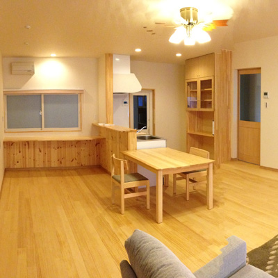 桧の腰板と床暖房で癒しのあったかすまい