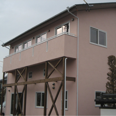 スイス漆喰と唐松の家